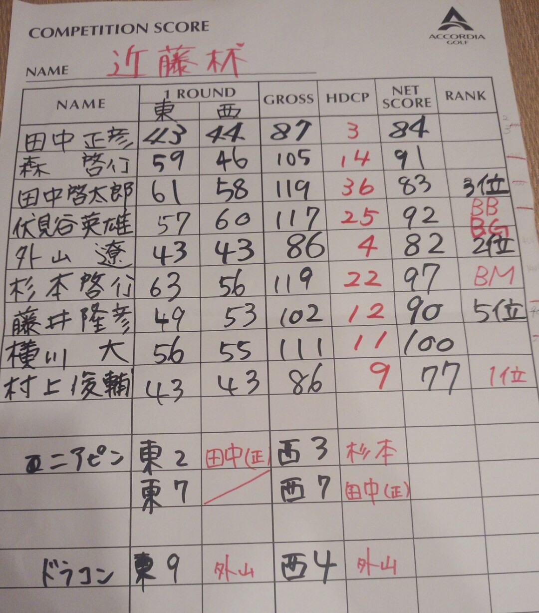 個人的には3位になりました。レベルが低いですね(笑)ドライバーOB病が治りません(笑)アイアンにも言えますが力を抜くことを覚えたいです…