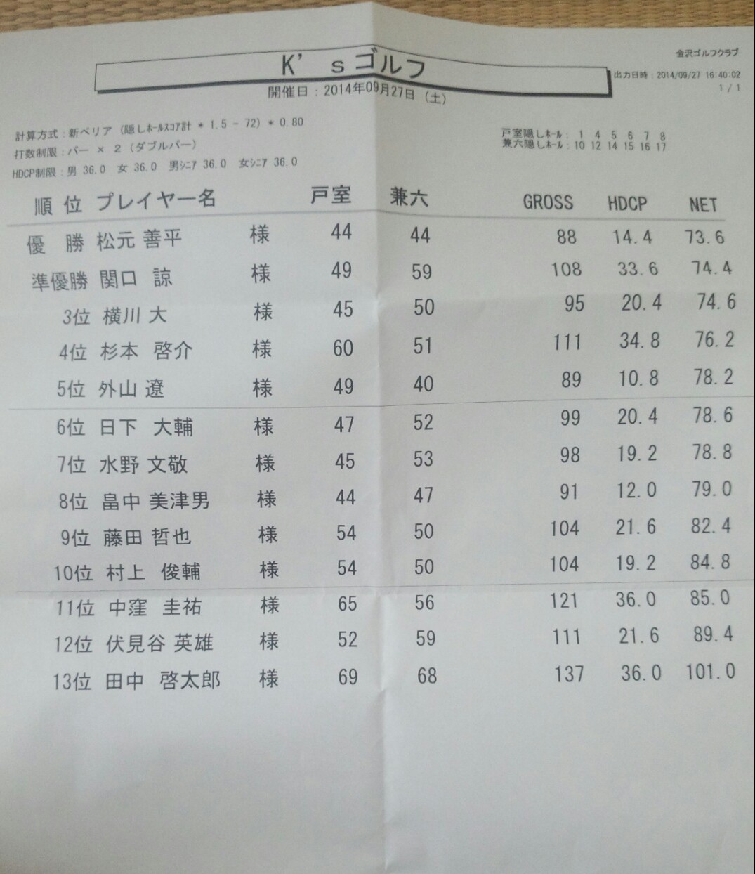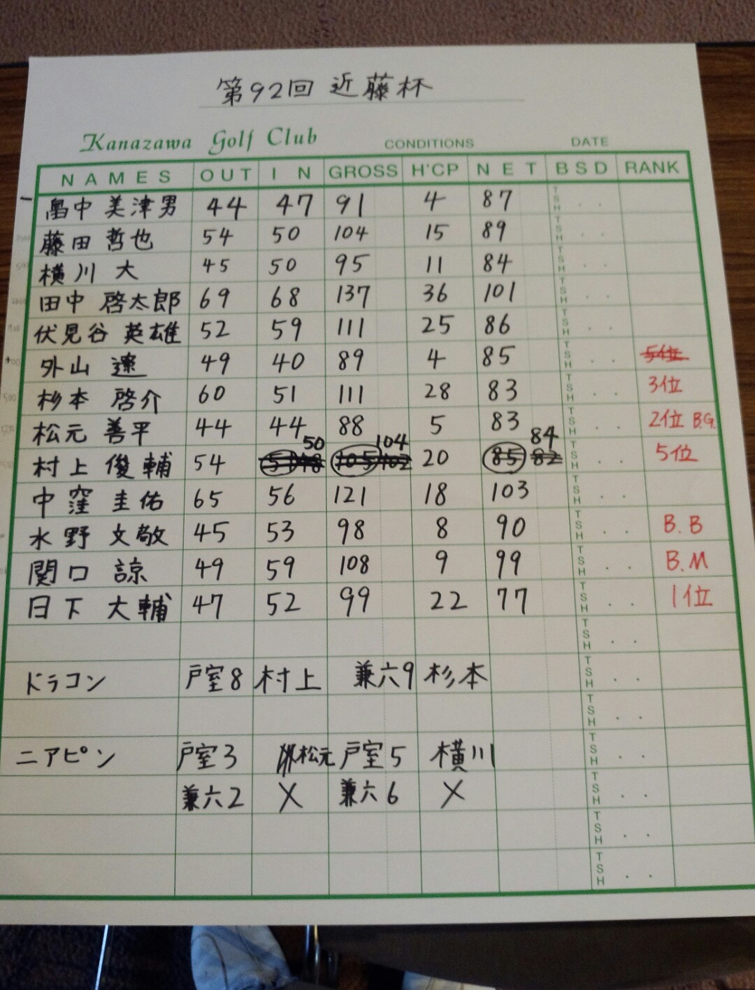 さて、早速ですが9/27(土)に行われた第92回近藤杯の結果報告をしたいと思います。