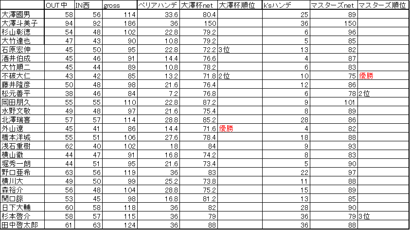 お疲れ様です。先日の大澤杯の結果報告をさせていただきます。