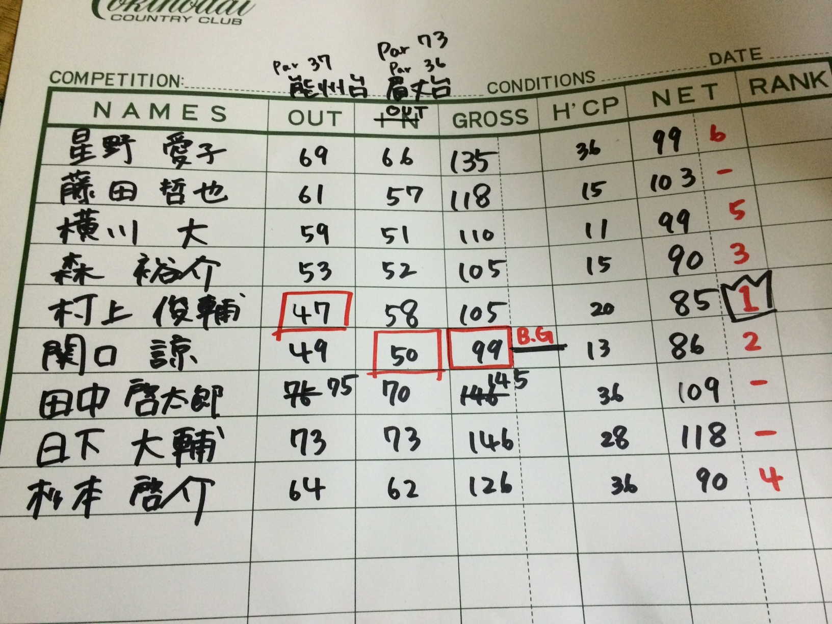 また今回参加予定だった社会人OBの方々、残念ながらラウンドできませんでしたが、また次回以降よろしくお願いします。