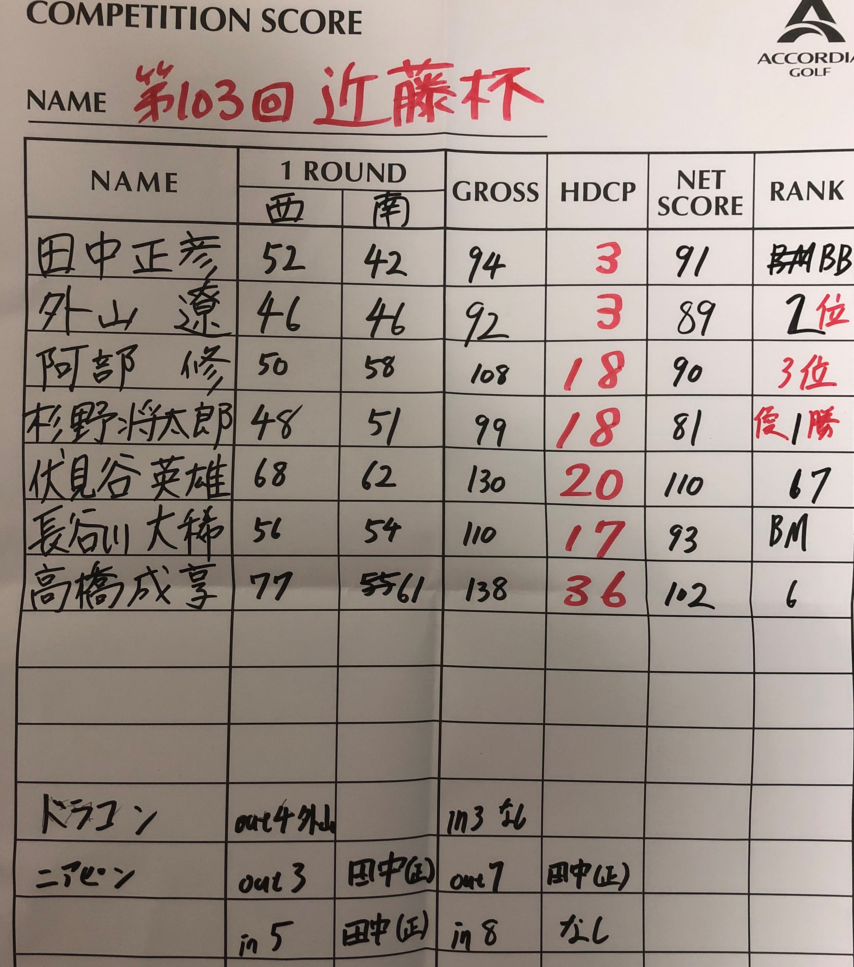 次回、第103回近藤杯は11月開催予定です。よろしくお願い致します。
