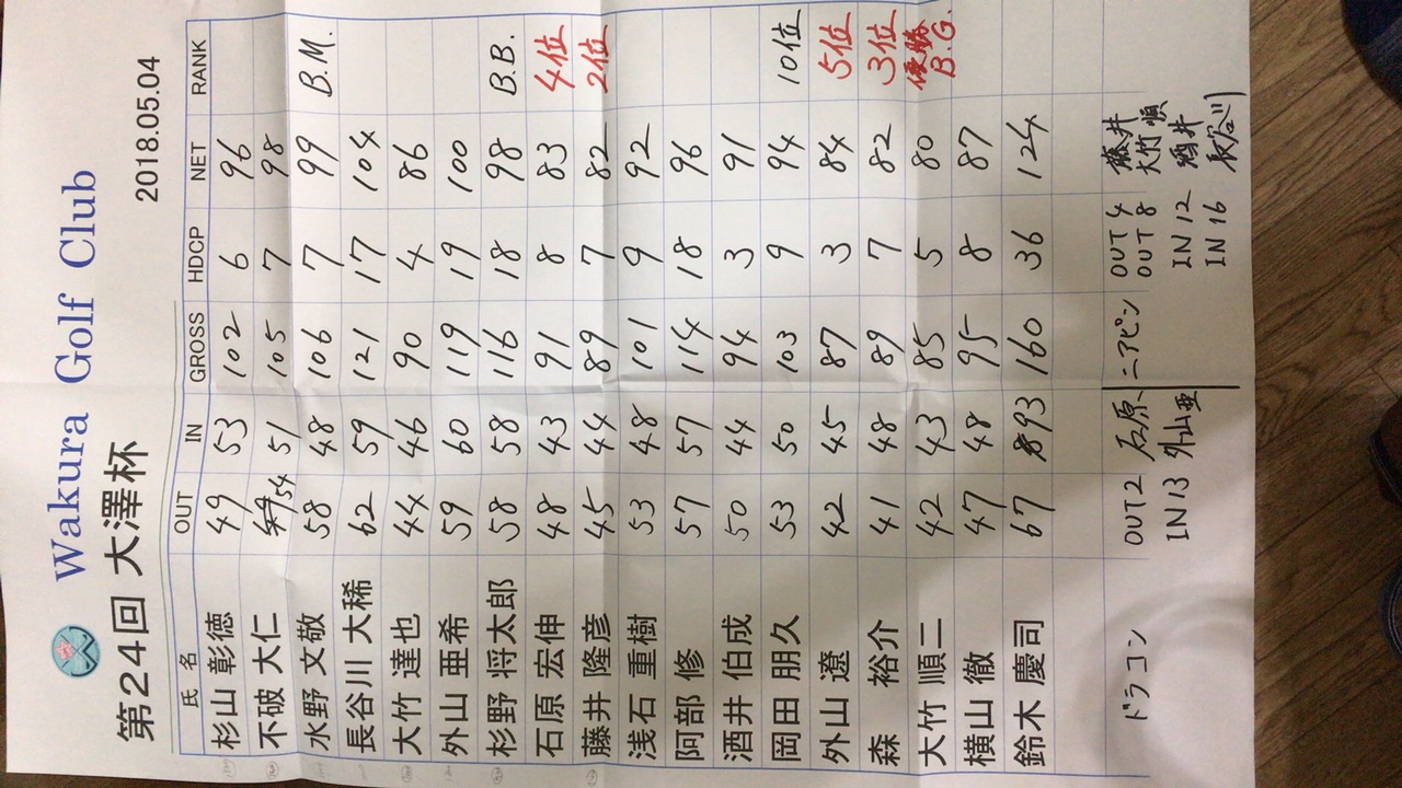 5月 大澤杯(金沢時代マスターズ)
