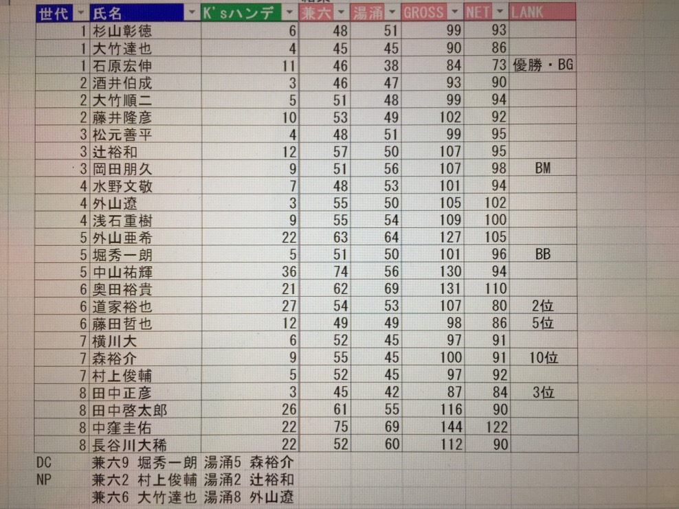 以下、結果になります。上がK’sハンデ方式、下がダブルぺリアハンデ方式による結果です。