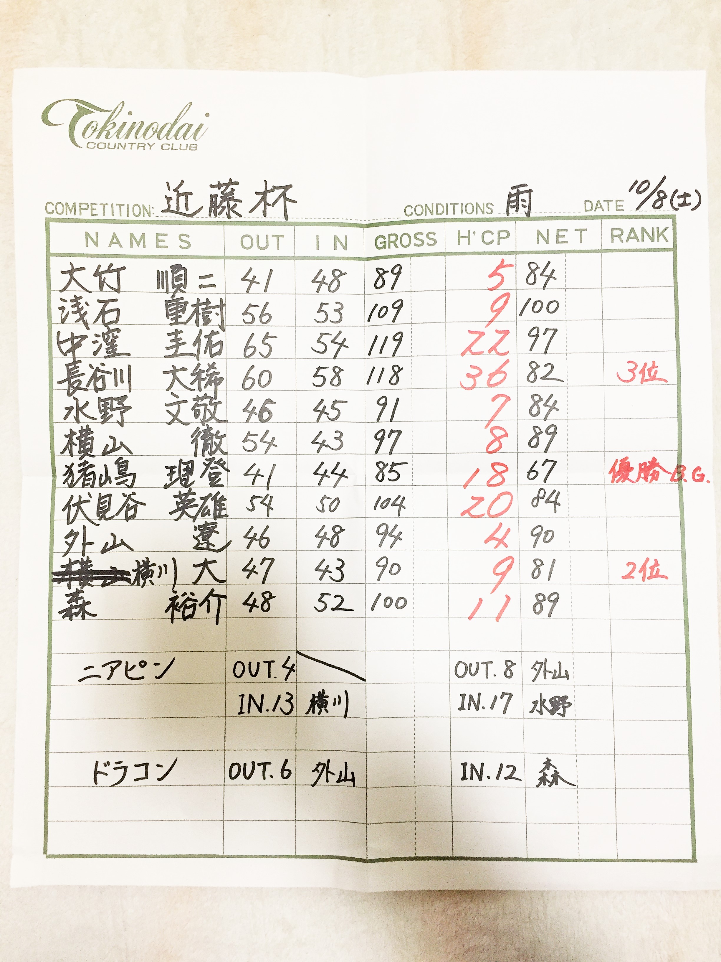 11月5日開催予定だった近藤杯ですが、参加者が少なくコンペを行うのが困難となりました。他の日にちでの日程調整も行いましたが、開催が困難なことが予想されます。